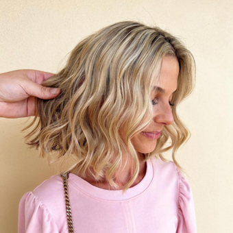 - Style: Blow dry hair and use the Sam Villa Signature Series Professional Curling Iron 1” on the color-treated setting. A color-treated setting is KEY after a blonding service because hair is fragile. This setting (392°) is great because anything over 400° can actually remove haircolor molecules from the hair.